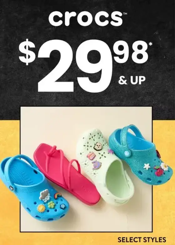 Hurry in and get $29.98 & up Crocs shoes in store for a limited time.